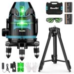 SEESII レーザー墨出し器 L5-B1-Proは、5ライン6点の高輝度グリーンレーザーを搭載し、屋外でも使用可能。三脚とエレベーターの一体型、無段階調整の明るさ、LCDディスプレー、2つの大容量バッテリー付きで便利な収納箱も完備。