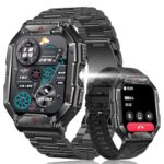 2025改良型スマートウォッチ、2.1インチ大画面、Bluetooth 5.3、GPS、100+運動モード、耐衝撃、1ATM防水、650mAhバッテリー、音声アシスタント対応。iPhone/Android対応。