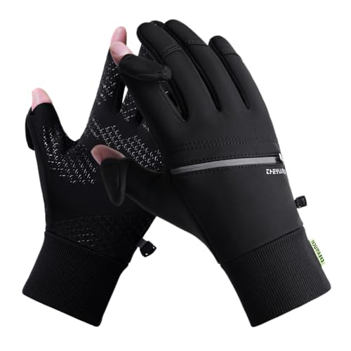 防寒グローブは2指出し設計で、スマホ操作が可能。メンズ用のアウトドアグローブで、保温・防風・防水機能を備え、滑り止め加工があります。バイクや釣り、ジョギングに最適な冬用手袋。サイズはL。