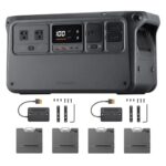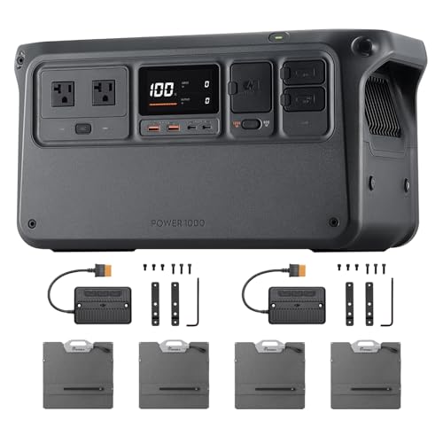 DJI Power 1000は1024Whの容量で2000W出力。200Wソーラーパネル4枚、MPPT2枚付き。IP67防塵防水、急速充電1.1時間。長寿命10年、アウトドアや停電対策に最適なポータブル蓄電池。