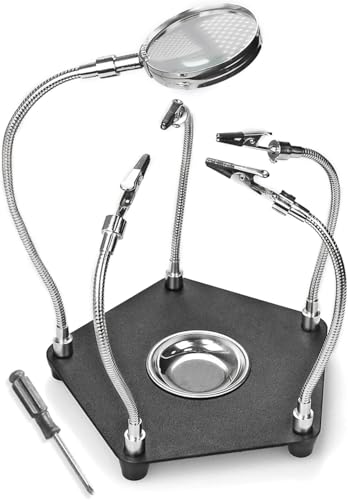 サードハンドホットエアガンスタンドは、PCBボードを支えるための便利なツールです。3倍のLED虫眼鏡を備え、はんだ作業に役立ちます。