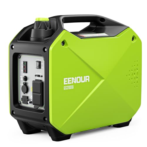 EENOUR GS2000iは1.6kVAの正弦波インバーター発電機で、防音型。PSE認証済みで、高出力かつ静音。AC/DC/USB出力、50Hz/60Hz切替、過負荷保護機能、オイル不足警告付き。キャンプやDIY、災害時にも最適です。
