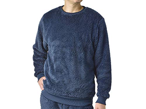 FLAG ON CREW 超モコモコトレーナー メンズ ゆったり無地ムートンボアの上着。サイズ3L、カラーはネイビー。暖かく快適な着心地が魅力の一着です。