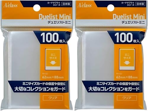 アクラスのトレカスリーブは、デュエリスト向けのミニサイズ(62×88mm)で、大切なコレクションカードをしっかりガードします。100枚入りが2袋セットでお得です。