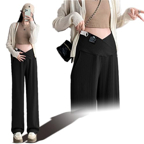 妊婦向けのマタニティパンツ。春夏にぴったりの薄手ブラックデザイン。調整ベルト付きでゆったり楽々。おしゃれで着痩せ効果もあり、快適な着用感を提供します。サイズL。