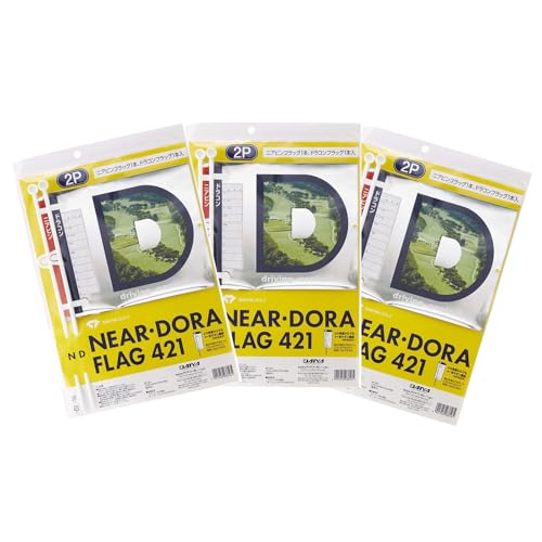 ダイヤゴルフのコンペグッズ、ニアピン・ドラコンの旗3枚セットです。遠くからでも視認性の高いデザインで、コンペ用に最適なフラッグです。単品の販売も行っています。