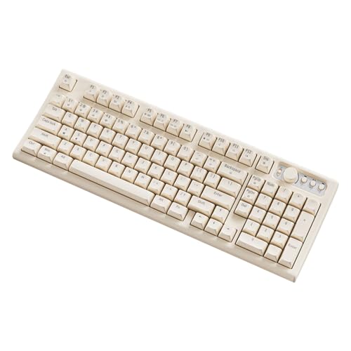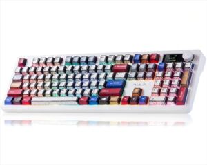 HOGREL×EWEADN V97は、ワイヤレスのトライモードキーボードで、2000mAhバッテリー、RGBライト、プログラム可能なノブ搭載。Win/Mac対応、消音機能付き。