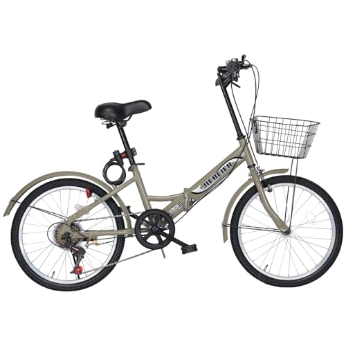 JIEBEIERの折り畳み自転車(20インチ)は、7段変速、カゴ、ワイヤー錠、ライト付き。防滑タイヤと軽量の高炭素鋼フレームで、通勤や通学に最適な小径車です。