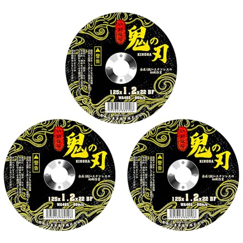 KINOHA切断砥石は125mmφで、金属や鉄工用に対応した替刃です。3枚入りで、ディスクグラインダーに使用可能。サイズは125×1.2×22mm。高品質な切断性能を提供します。
