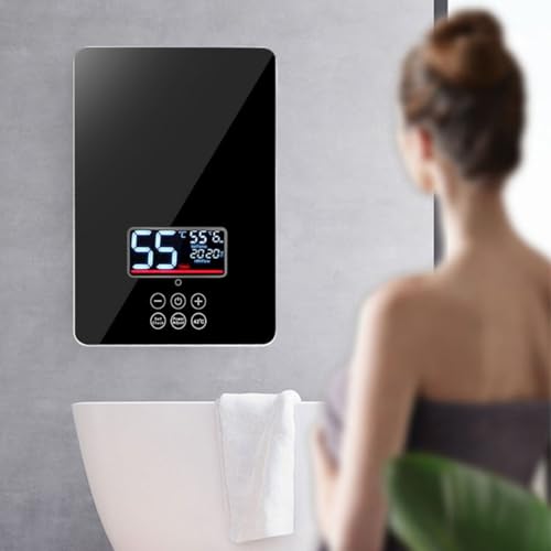 4000Wのポータブル電気給湯器。急速加熱で水温30℃〜55℃を±1℃で調整可能。IPX4の防水設計で、キッチンやバスルームで使用可。過熱保護や節水機能も搭載。