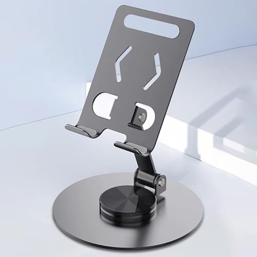 回転式アルミ製携帯電話スタンド デスク用 タブレットスタンド 調節可能な回転式デスクトップホルダー 360度回転するベース タブレットスタンド 4~9.7インチの携帯電話やiPadに対応 ラウンドベース ブラック 高価買取中