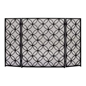暖炉スクリーン ブラック ヨーロピアンスタイル 暖炉スクリーン 金属ガードレールパーティション メッシュ装飾付き 鉄製保護フェンスカバー