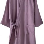 Jomokuのバスローブは綿100%のダブルガーゼ製で、メンズ・レディース兼用。優しい肌触りで柔らかく、寝巻きや部屋着に最適。吸水性、通気性に優れ、速乾で保温性もあり、軽量で春夏秋にぴったりのルームウェアです。