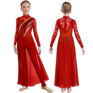 [Miaeowve] 子供向け ガールズ 体操&フィギュアスケート用 フローラルレース スカート付き レオタード ジャンプスーツ ロンペボディースーツ タンク型 ブルゴーニュ 15-16歳