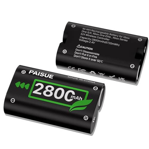 PaisueのXbox Series X/S対応充電バッテリーは2800mAhで、Xbox One、シリーズX、Elite、X/Sにも対応。コントローラー用の互換バッテリーが2個セットで提供されます。