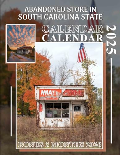 2025年までの南カロライナ州の放棄された店舗の美しさを撮影したカレンダー。2024年10月から2025年12月まで。サイズ8.5 x 11で、大きな計画や贈り物に最適。