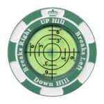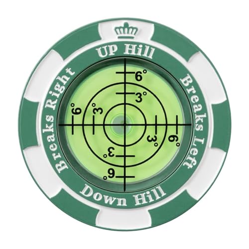高精度の丸形気泡水平器と目盛り付きゴルフグリーン傾斜計を搭載したマグネット式ゴルフマーカー。パター練習に最適なボールマーカーで、便利なグランドゴルフ用品です。