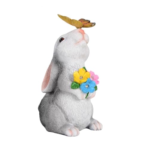 YHHIRCHの愛らしいラビット型ガーデニングソーラーライト。防水仕様で、庭や玄関の雰囲気作りに最適。自動点灯・消灯機能付き。サイズは14cm×15cm×26cm、暖色LEDで優しい光を提供します。