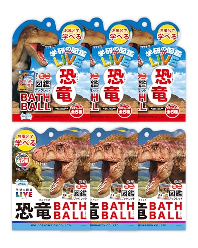 学研の図鑑LIVE恐竜バスボール6個セット。ミニブック付きでお風呂が楽しくなるおもちゃです。子供向けのクリスマスプレゼントに最適なバスボム。色とりどりの恐竜が登場し、お風呂タイムを盛り上げます。