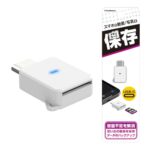 カシムラのmicroSDメモリーリーダーNKD-267は、USB-C対応スマートフォン(iPhone&Android)に対応し、データの読み書きが可能。コンパクトで持ち運びにも便利です。