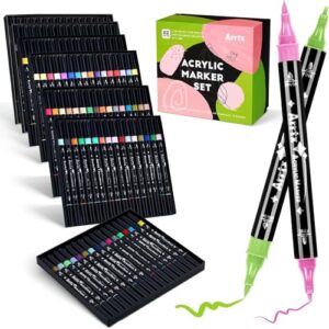 Arrtx デュアルチップ アクリルマーカー 112 色 ブラシチップ & ファインチップ 岩石・木材・キャンバス・ガラス・プラスチック・布地用 絵画・着色・ドローイング アートサプライ