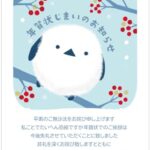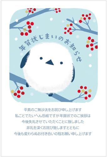 年賀状じまいハガキ 10枚セット。私製はがきで、アルファプリントサービス公式のS-NJ209デザイン、南天とシマエナガが描かれています。オシャレで新年の挨拶にぴったりなアイテムです。