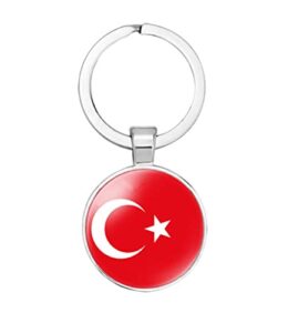 vmcoatdu Türkiye トルコ 国旗 キーホルダー キーリング ギフト 男性 女性 キーチェーン ステンレススチール 象嵌ガラス素材, 画像, One Size