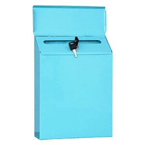 Wxqbjtam 鉄製縦型ロック 書類 新聞ホルダー 郵便ポスト 玄関 オフィス, 青