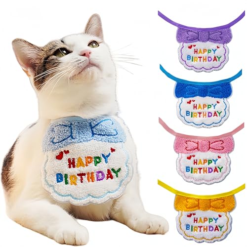 ペット用のピンクのバンダナです。誕生日グッズとして最適で、HAPPY BIRTHDAYのデザイン。タオル、スタイ(ビブ)、よだれかけとしても使用可能。犬や猫に対応し、調節可能。写真撮影やパーティー飾りにぴったりなおしゃれでかわいいアイテムです。