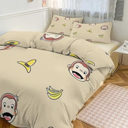 おさるのジョージ布団カバー3点セットは、可愛いジョージのデザインが特徴。セット内容は掛け布団カバー、シーツ、枕カバー。子供部屋にぴったりで、柔らかい素材で肌触りも良好。洗濯機で洗えるのでお手入れも簡単です。