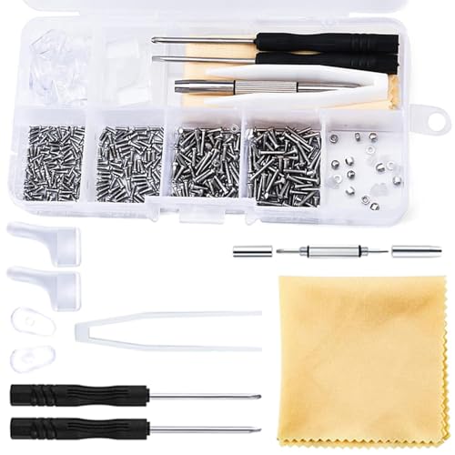 メガネ修理キットには500個のねじが入ったセットで、携帯用のメガネドライバーも付属。便利な時計アクセサリーとしても使えるシルバーのデザインが特徴です。