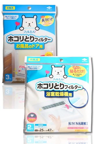 東洋アルミのホコリとりフィルター「フィルたん」お試しセット。お風呂のドア用3枚、浴室乾燥機用2枚入り。簡単に貼るだけで、ホコリをしっかりキャッチし、清潔な空間を保ちます。