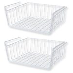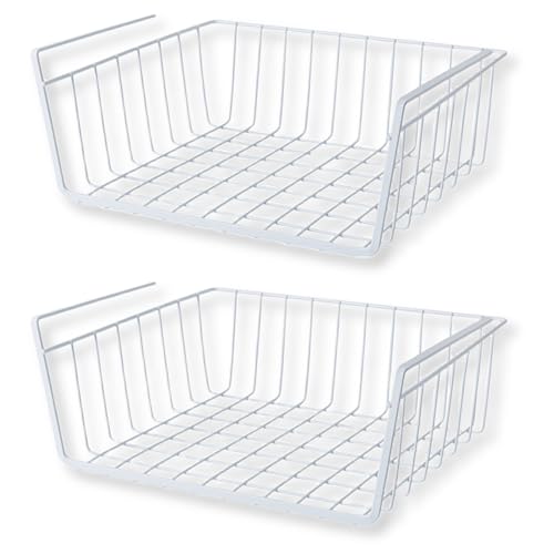 RYOHIN Lab.の吊り下げ収納カゴは、デスク下やキッチンの棚下で使えるワイドサイズの省スペース収納。シンプルなスチール製で、工具や穴あけ、ネジ止め不要の2個セットです。