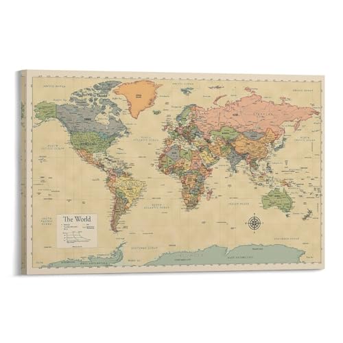 日本製の世界地図キャンバスポスターは、サイズ16x24inch(40x60cm)で、モダンなデザインが特徴。壁アートとしてすぐに掛けられ、誕生日ギフトにも最適です。