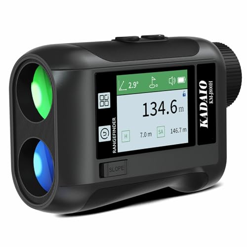 KADAIOのレーザー距離計は874ydに対応し、音声アナウンスや高低差補正機能を搭載。液晶ディスプレイ、振動機能、スピード測定も可能で、軽量設計。IP54防塵防水、充電式、専用ケース付き。