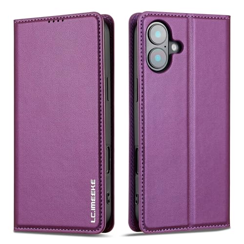 FeeY対応のiPhone16手帳型ケース。高品質合成皮革を使用し、カード収納やスタンド機能、マグネット式で便利。放熱性に優れ、耐衝撃性もあり、手触りの良い人気のパープル。