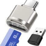 Type-CメモリーカードリーダーはMicroSDカード対応。汎用USB Type-Cポートデバイスに最適。シルバー1個とType C (メス) to USB 2.0 (オス)アダプタ付き。iPhone15/16/iPad/Air Pods/Galaxy S23対応。