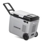 JESIMAIK コードレス冷温庫 HT20は20Lの大容量で、-18℃~60℃の温度制御が可能。車載・家庭兼用、DC12V/24V、AC100V対応。静音設計でエネルギー効率が高く、USB出力機能も搭載。