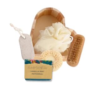 女性用スパギフトバスケット – ボディブラシ、スポンジ、フットスクラバー&ヤギミルクソープ付きバスセット – リラクゼーション用スキンケアキット セルフケア & 誕生日プレゼント– お母さん、妻、姉妹のためのハート型ボックス