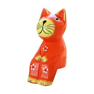 オブジェ [オレンジ] 猫 木彫り インテリア