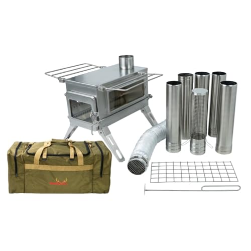 WINNERWELL ウィンナーウェル ノマドプラス ダブルビュー Mサイズ(76mm)は、外気吸入型の二次燃焼薪ストーブです。アウトドアでの暖房やクッカーとしても使用可能な3点セット。日本正規品です。