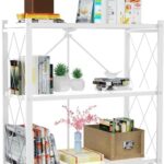 スチール製の折りたたみラック、3段で大容量収納が可能。可動キャスター付きで移動も簡単。キッチン、リビング、書斎など多用途に使用でき、設置も容易。