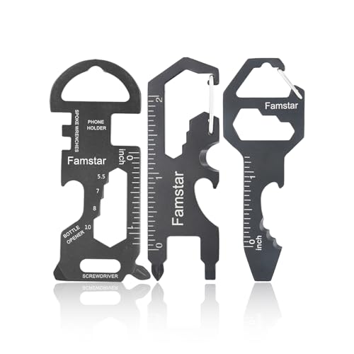 キーチェーンマルチツール3パックは、ポータブルで錆びない金属製。19の機能を搭載し、レンチ、ネジ、定規、栓抜きとして使用可能。男性に最適な便利アイテム。