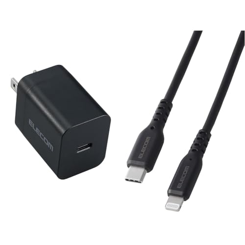 エレコムの充電器は20W USB PD対応でGaN採用の折りたたみ式プラグ。PSE認証を取得。ライトニングケーブルは1mで60W対応、Apple MFi認証済み。
