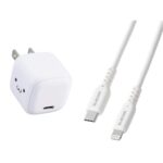 エレコムの充電器Type-C 20W USB PD対応、折りたたみ式プラグ、PSE認証、加えて2mのApple認証ライトニングケーブル(60W高速充電対応)をセットにした商品です。