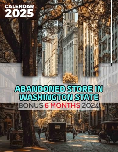 2025年版の大きなカレンダー『Abandoned Store in Washington State』。2024年7月から2025年12月まで、荒廃した空間の美しさを強調。理想的なギフトです。