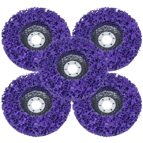 KeiSquareクリーニングディスクは、研磨やサビ除去、塗装落としに最適なグラインダー用ディスクです。5個セットで、紫色のディスクは耐久性が高く、下地処理に便利です。