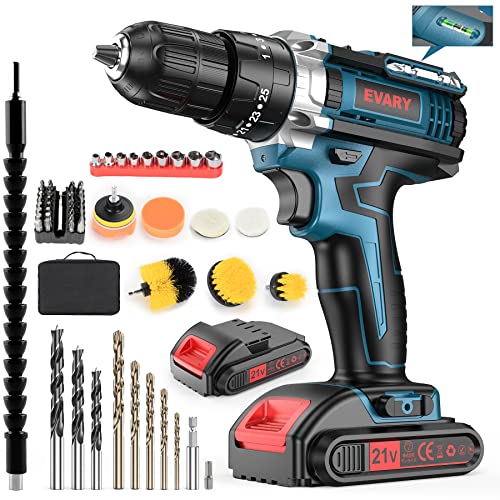 EVARY電動ドライバーは、21V・2000mAhバッテリー2個付きで最大42N・mのトルクを持ち、25+3段階の調整が可能です。無断変速と正逆転切替機能を備え、LEDライトも搭載。初心者でも安心して使用できます。
