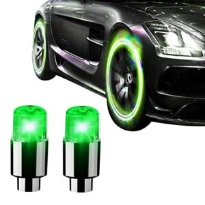 車2個用のLEDタイヤライト, スマートセンシングシステムを備えたLEDバイクホイールライト, 車のタイヤバルブステムキャップ自転車オートバイ防水タイヤスポークフラッシュライト、ホイールライト、2個 Laideyilan D:グリーン2個