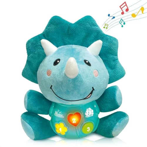 赤ちゃんの寝かしつけにぴったりな恐竜型のおしゃべりおもちゃ。0〜3歳向けで、歌を歌ったり光ったりします。知育効果もあり、新生児や幼児用寝具に最適です。出産祝い、誕生日プレゼントにもおすすめ。